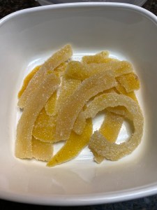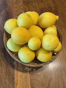 Barry moved hither and yon a couple more times before his final move to the great beyond, but he always came back to Kansas and his rural roots. In the end, he left me all his grow-boxes, and the lemon tree. This year was a good year for lemons, and good old Jose came through with a bumper crop. On harvest day, I picked 21 fruits off the branches, much like last year in December. I have learned how to make all kinds of lemon treats: lemon bars, of course, but also lemon curd (which is much like a jelly), and candied lemon peels.