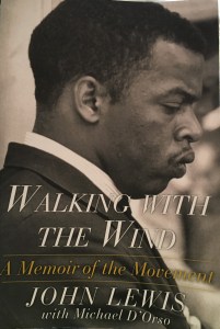 The book itself was daunting, 503 pages of relatively small print. But the metaphor in the prologue hooked me, a description of a wind storm Lewis experienced as a preschool boy. The wind blew so strong it lifted a corner of the shack his sharecropper aunt and uncle lived in. Harboring in the shack with his aunt and fifteen cousins, they held hands and walked from corner to corner, bringing the house down to the ground when the wind began to lift it. That became the metaphor for his life, and provided the title for his book, Walking With the Wind: A Memoir of the Movement.