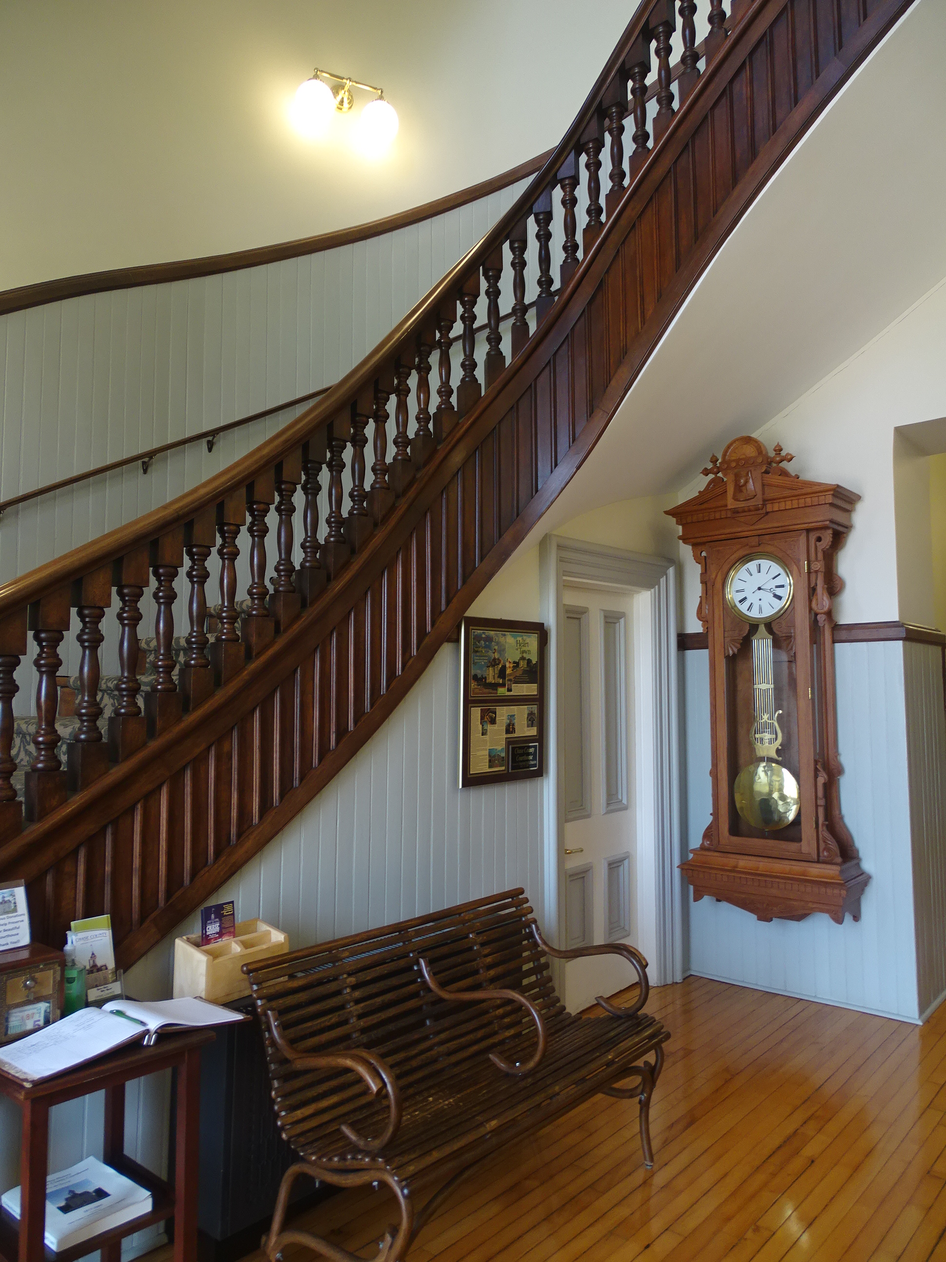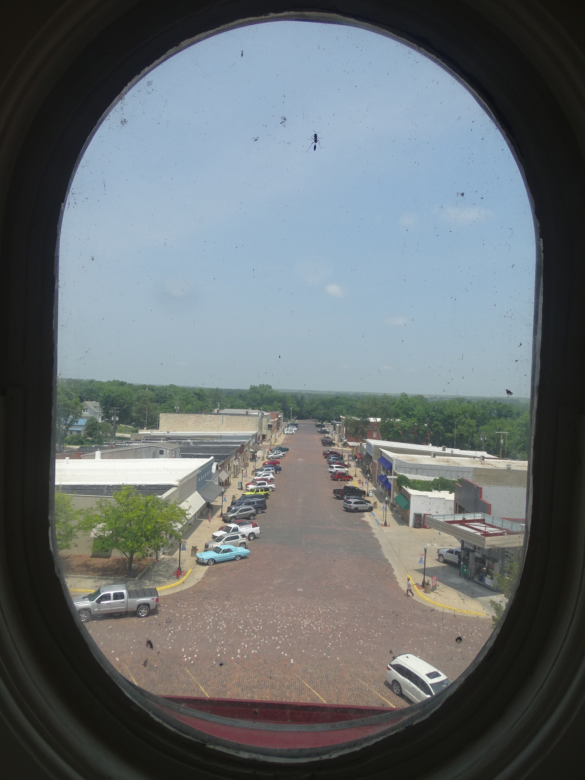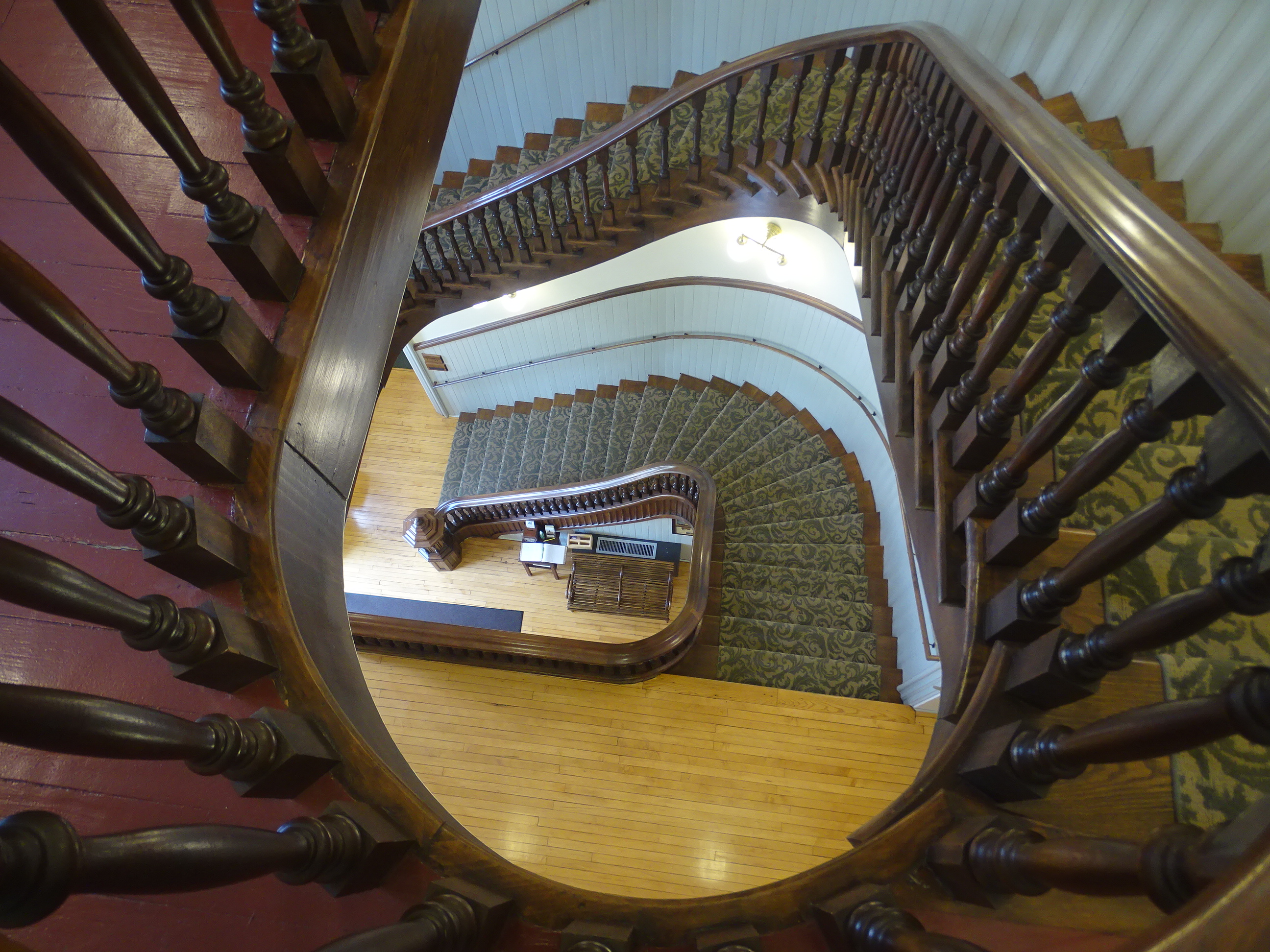 Inside, spiral staircases wound complete circles between the floors, each spiral directly in line with the one above or below. Locally harvested black walnut trees were crafted into the stairway balustrades. A jail on the second story was accessed through the courtroom and jury room. In use for a hundred years, new safety regulations in the 1970s forced the jail’s closure.