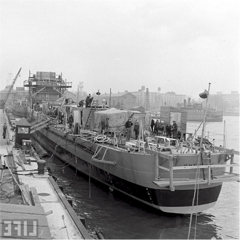 The Gherardi under construction in the Philadelphia harbor, 1942. Photo credit LIFE.