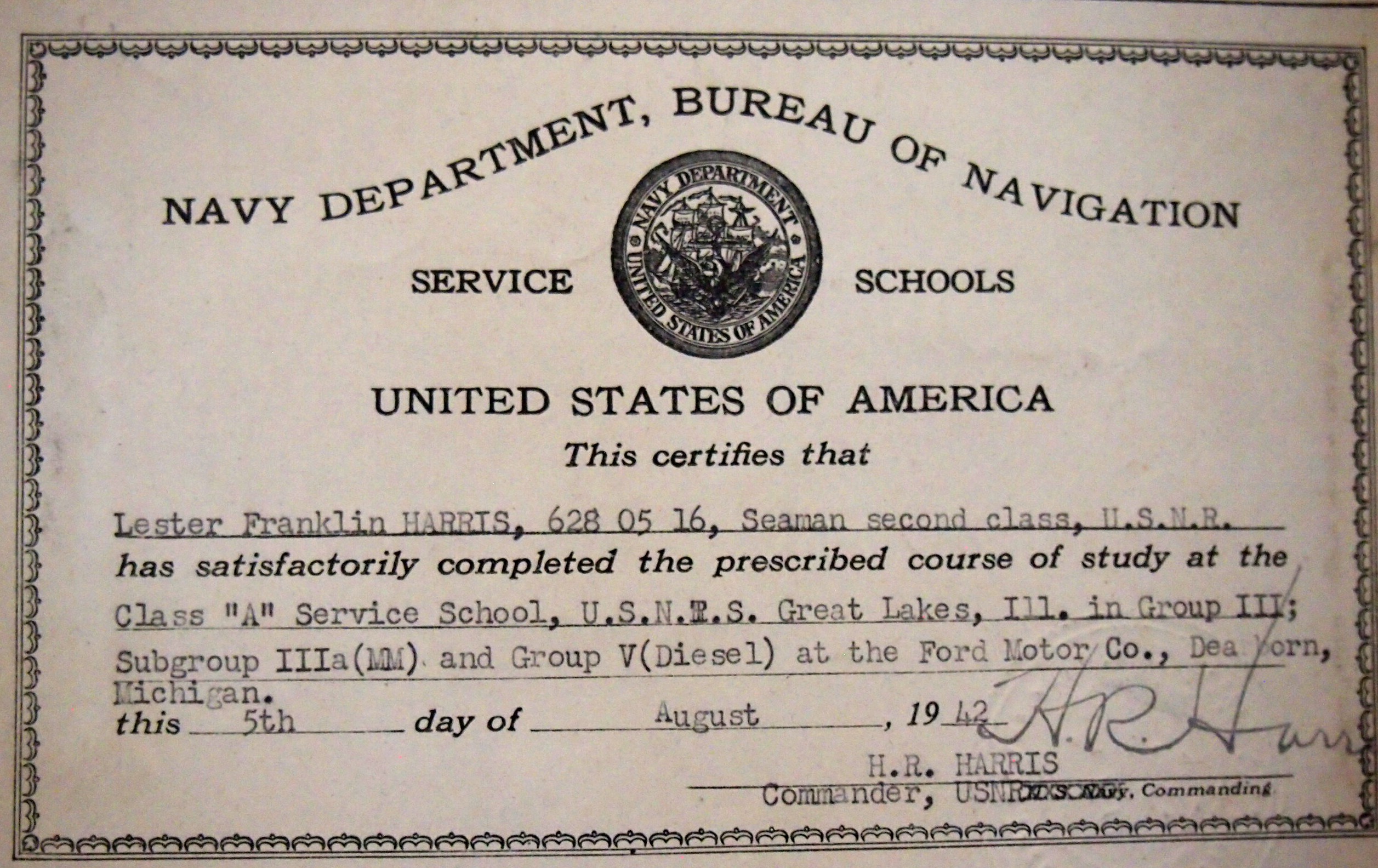 Lester’s leave was granted as he completed his training course, and shortly before he received his navy ship assignment. He would not be spending any more time in Michigan. He would be going on, part of a crew on a navy destroyer destined for distant places.OLYMPUS DIGITAL CAMERA